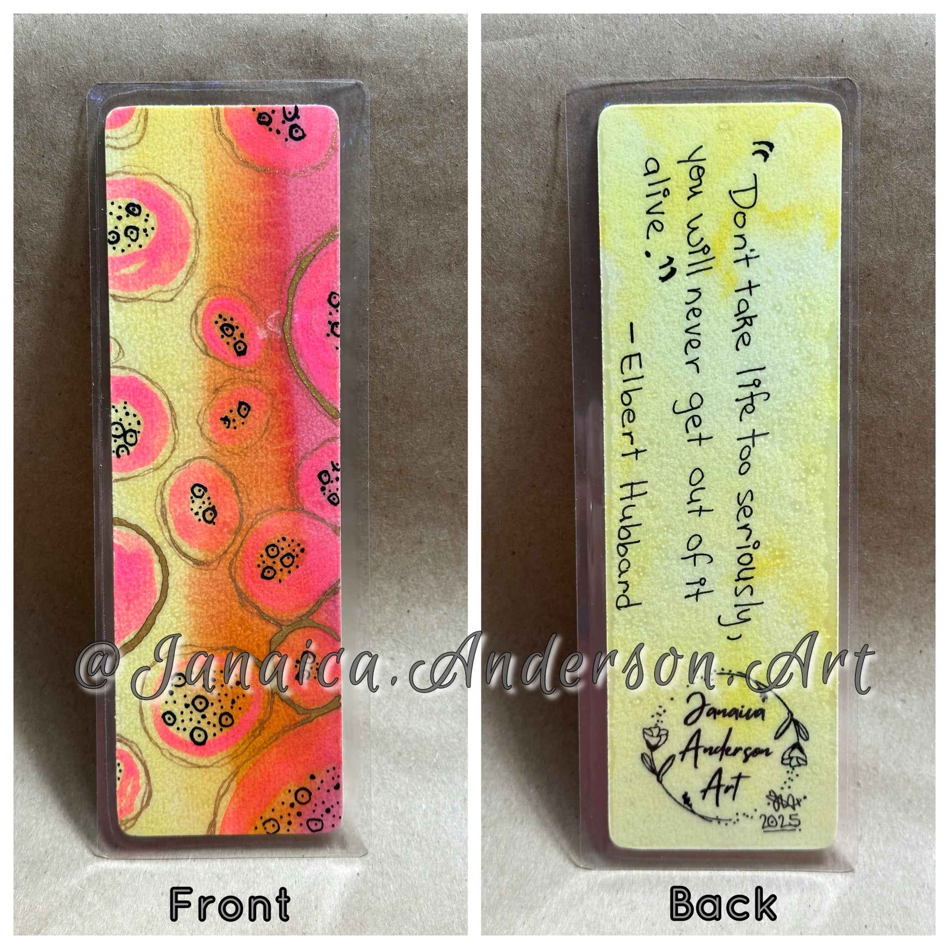 - Abstract bookmark hand painted on both sides.