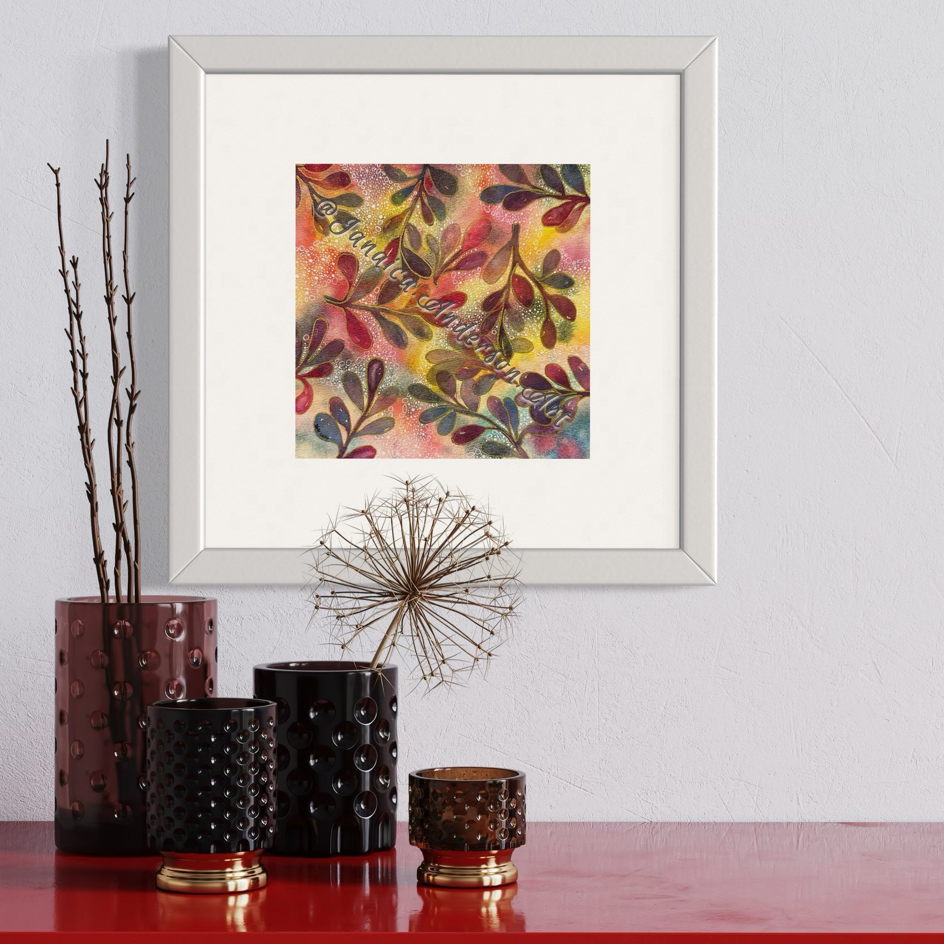 - 8”x8” original watercolor and mixed media painting on 100% cotton watercolor paper.