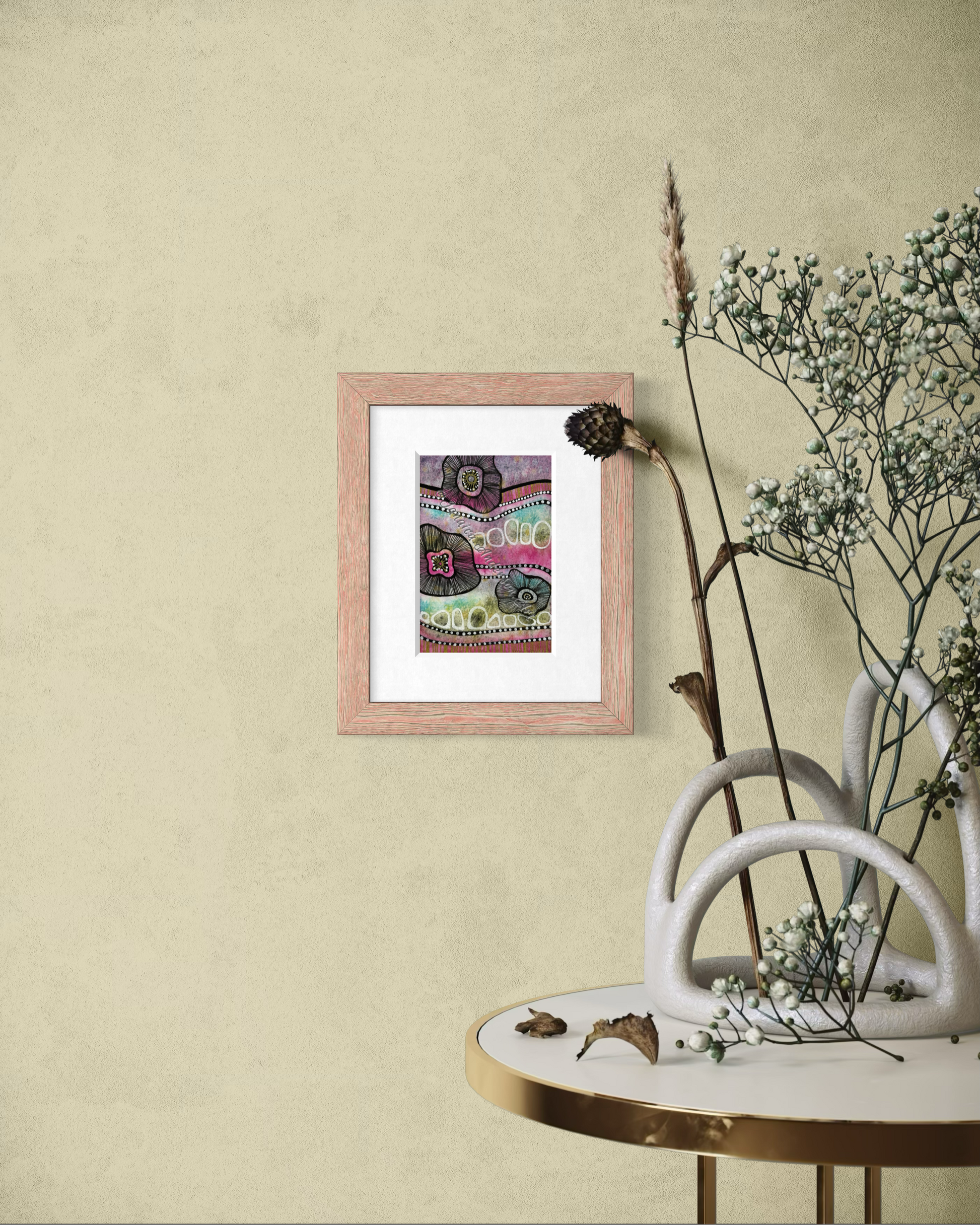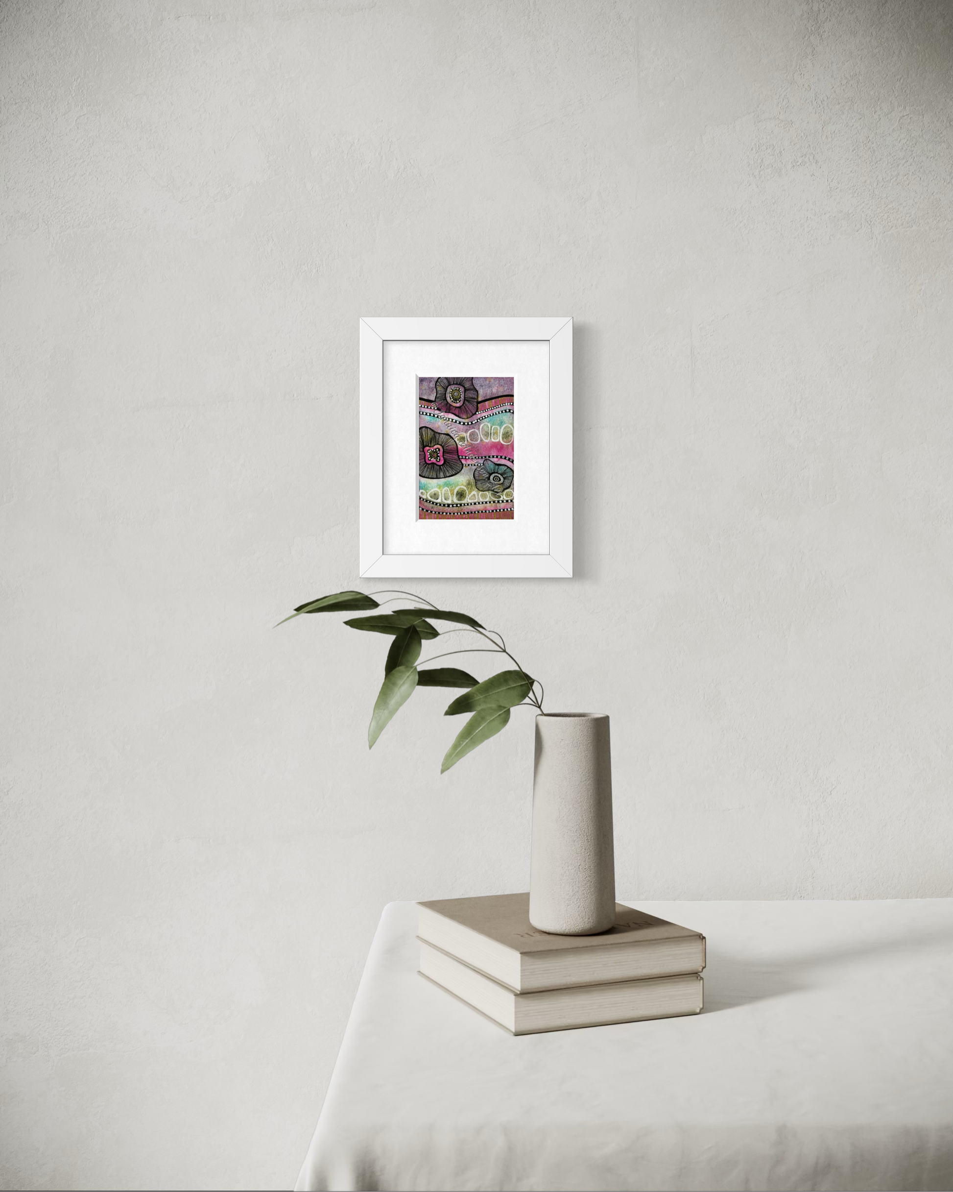 - 6”x4” original watercolor and mixed media painting on 100% cotton watercolor paper.