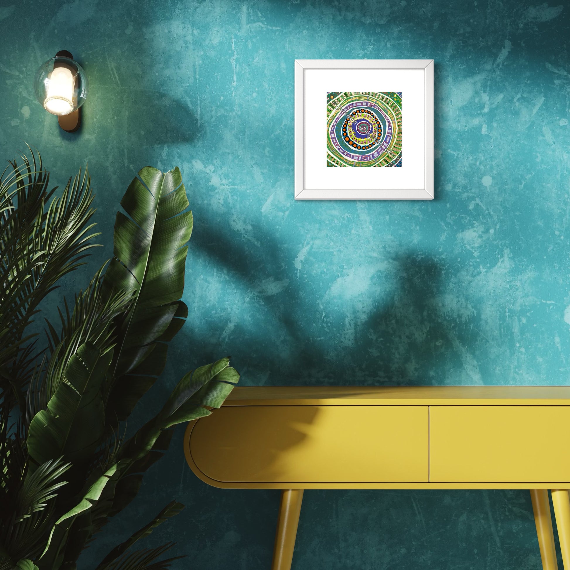 - 8”x8” original acrylic and mixed media painting on Bristol Board.
