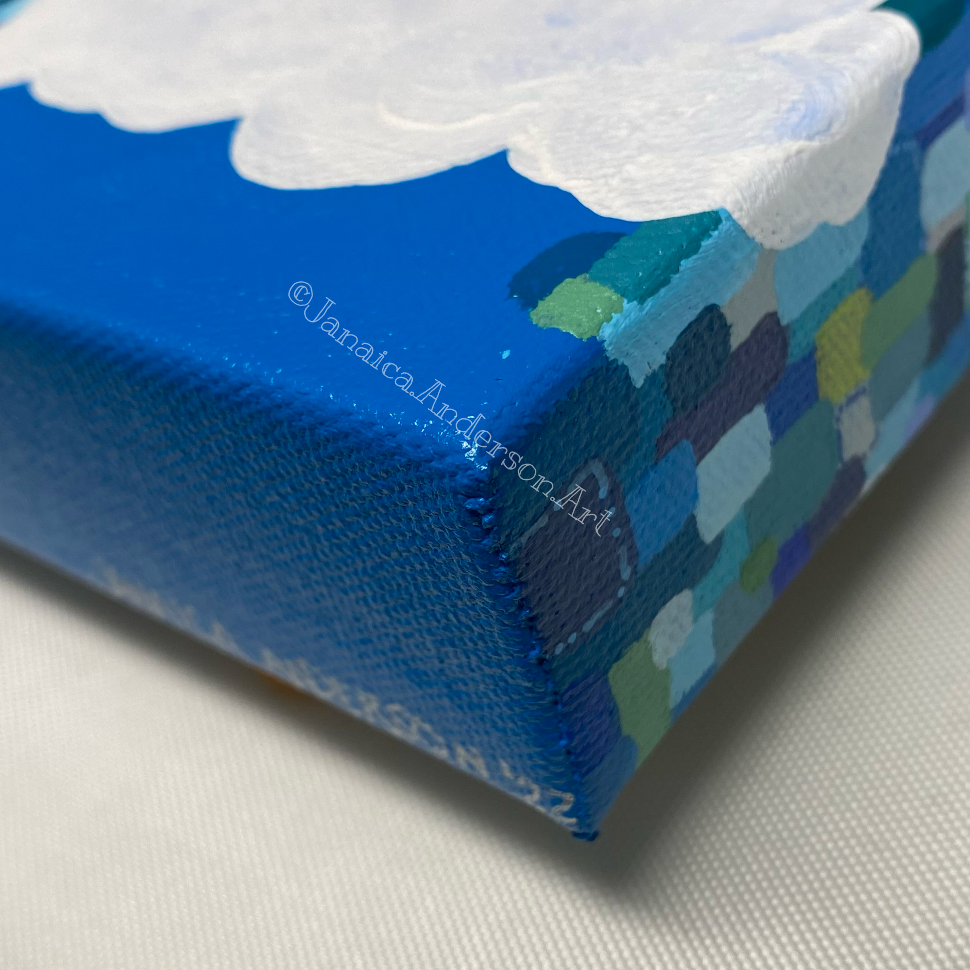 8 x 8 x 1 1/2” Gallery Wrapped Canvas, protected with a topcoat of satin varnish.